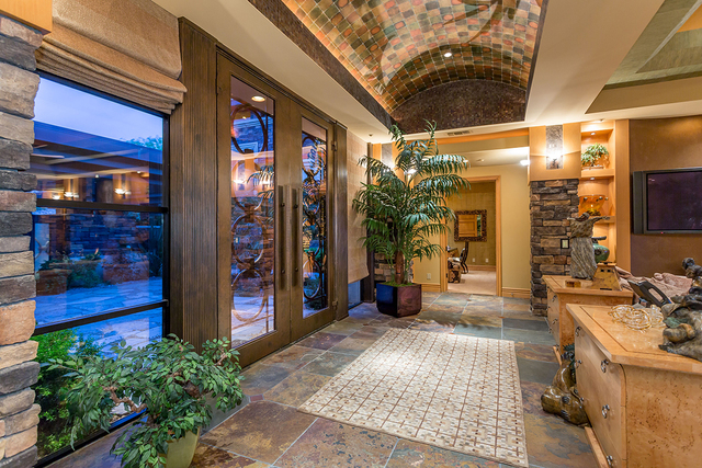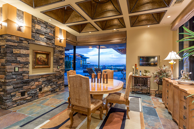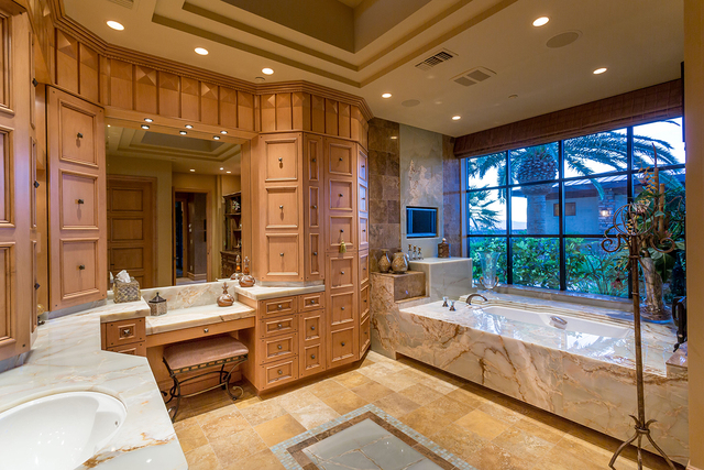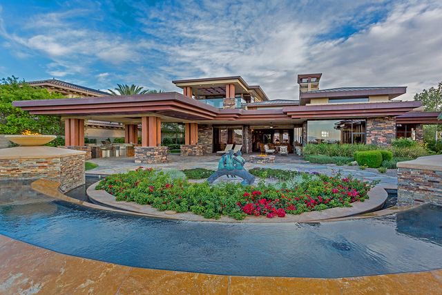 The main residence and two guest homes are nestled along the mountain ranges within the gated Terracina Estates, the most affluent development in Seven Hills community. The property boasts panoramic views of Las Vegas and the Rio Secco Golf Course, the 18-hole championship course where Tiger Woods holds the record score.