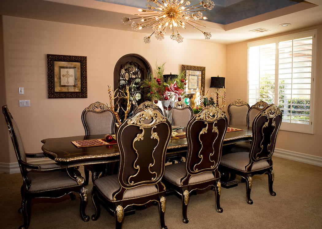 The seller, knowing the couple have deep roots in show business, left the dining room lighting fixtures, which he said came from an auction of Frank Sinatra’s Beverly Hills home furnishings years earlier.