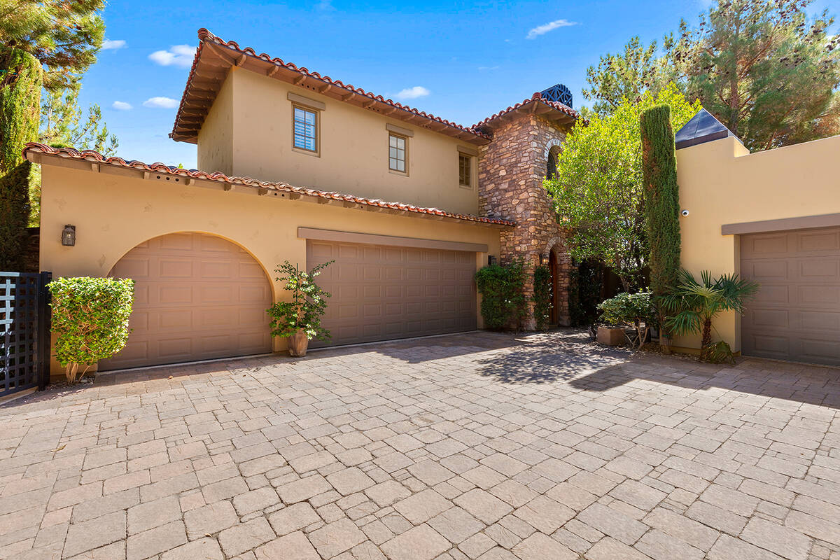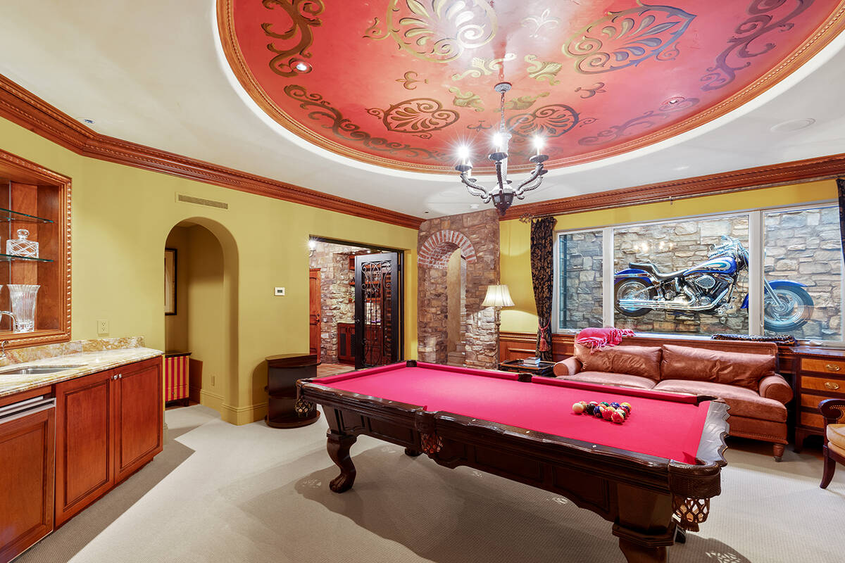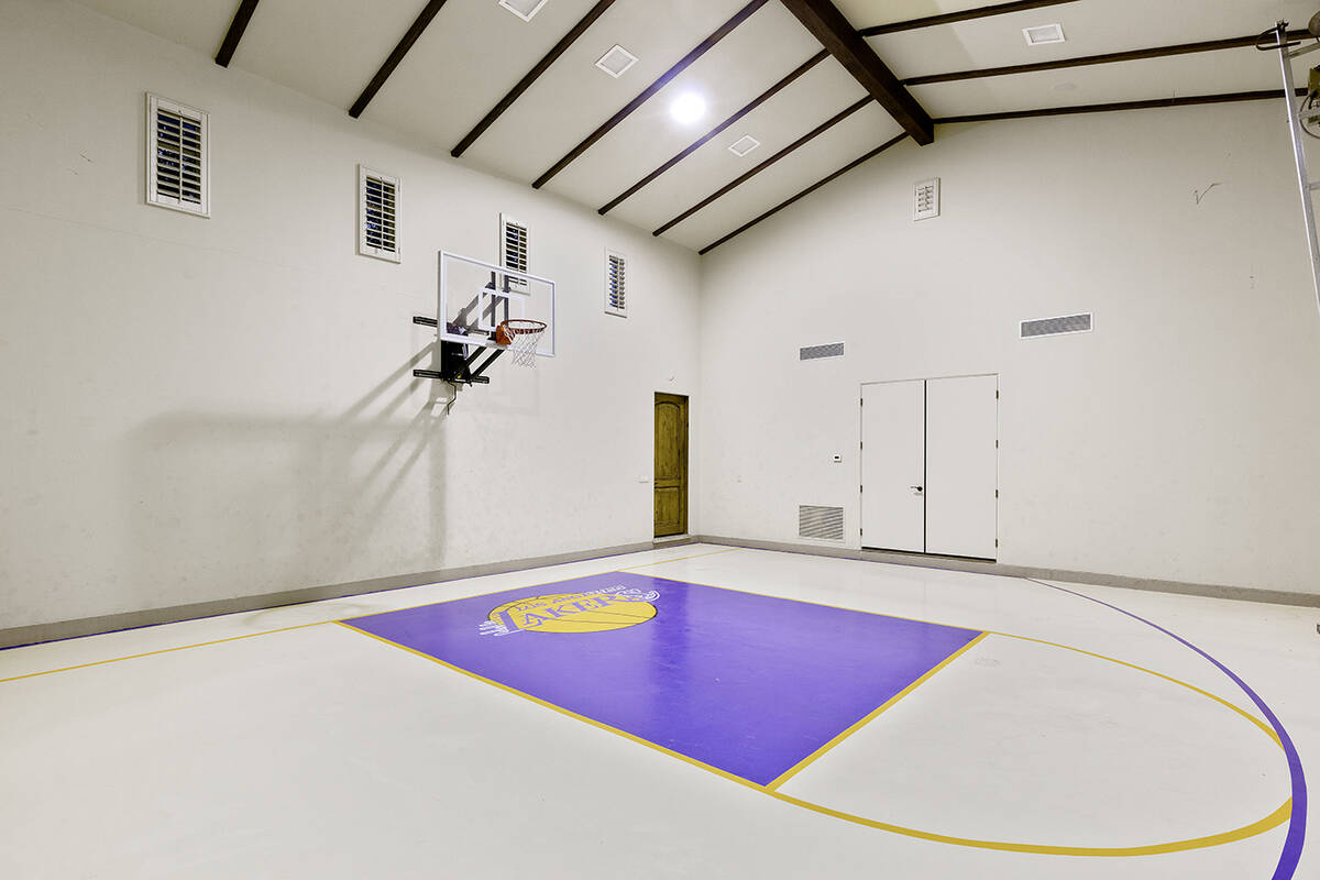 The Tuscan-designed home has an indoor basketball court, basement game room, wine cellar and a third-story lookout tower with Strip views.
