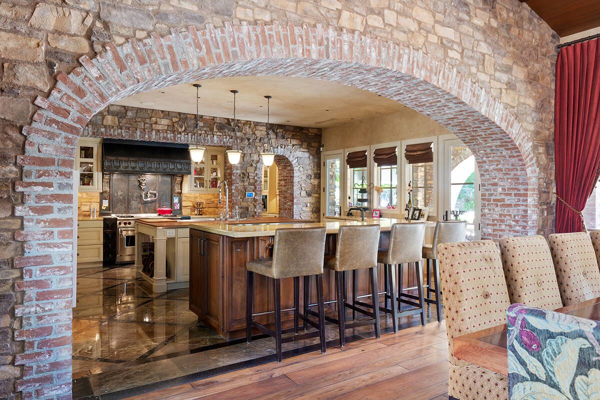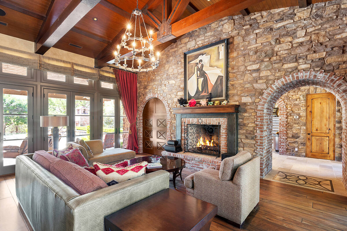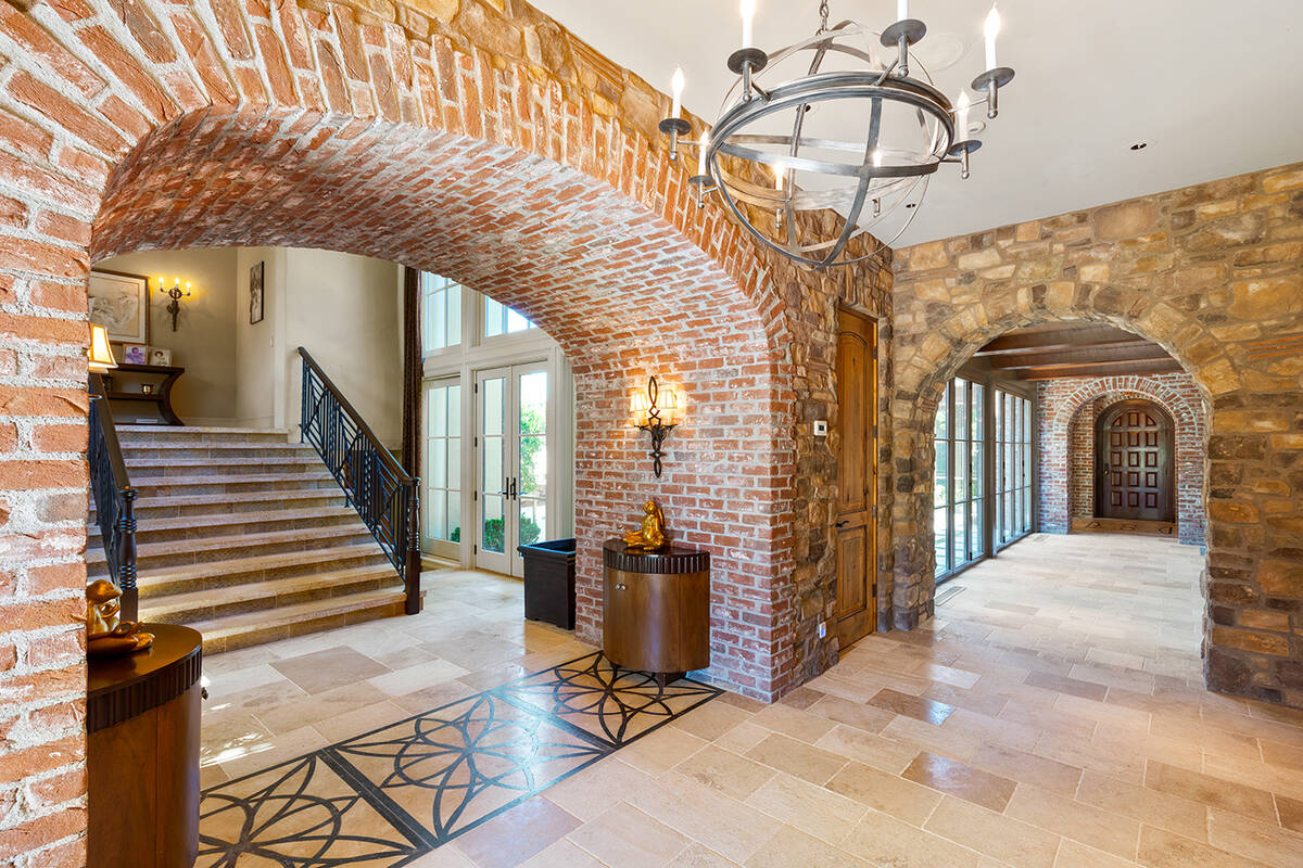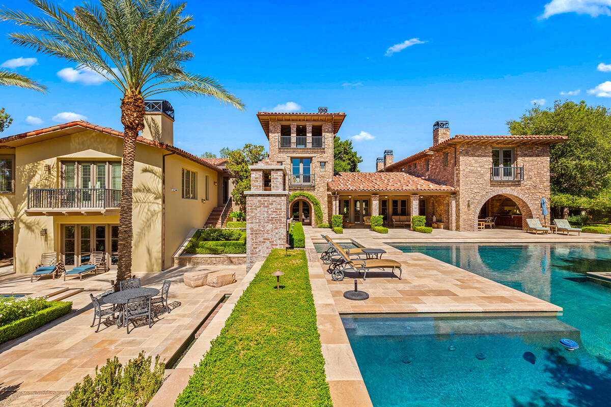 The Tuscan-designed home has an indoor basketball court, basement game room, wine cellar and a third-story lookout tower with Strip views.
