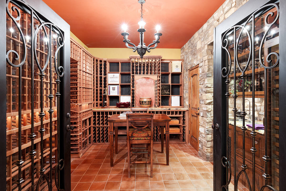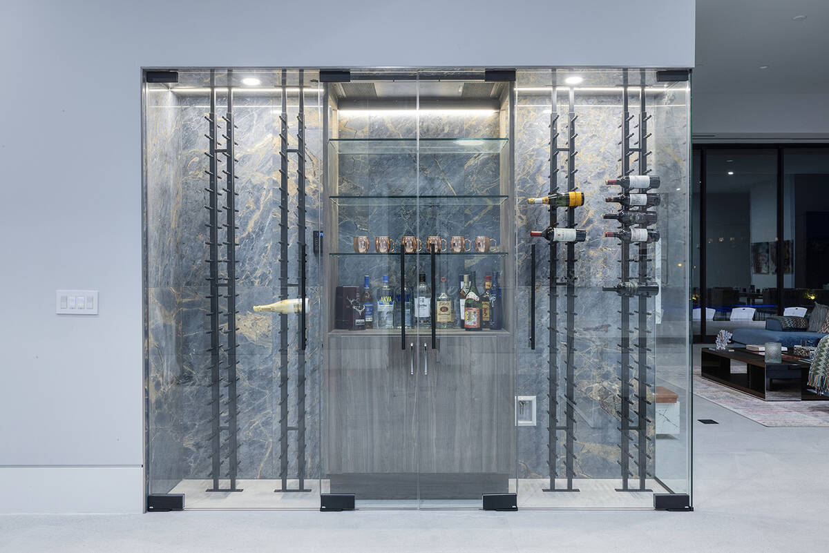 As part of a kitchen remodel, the home has a custom wine room. There’s also a theater room, office and glass room used as a playroom.