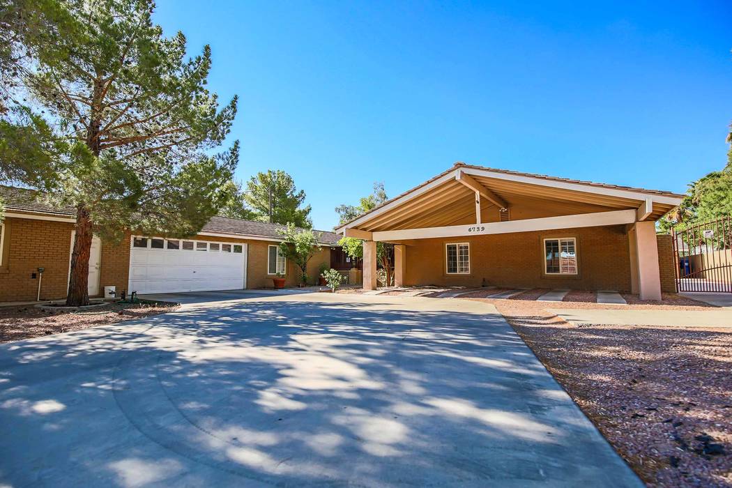 The home at 6739 Tara Ave. has four bedrooms, three baths and measures 2,838 square feet on two-thirds of an acre. It has brick trim and an entry courtyard. Whatever grass that was there has been replaced by rock. Behind a separate gate is a workshop for restringing tennis rackets.