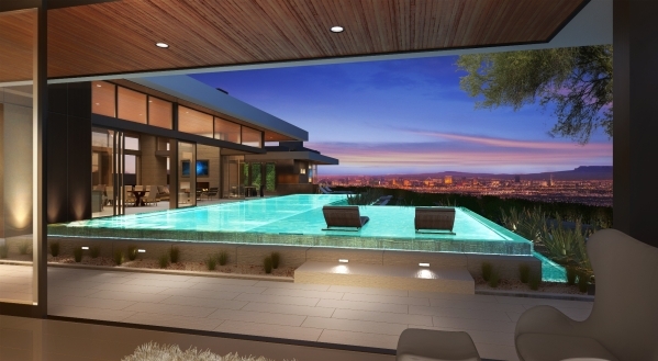 SB Architect's custom home design will be built on a site just over a half acre with sweeping views of Las Vegas and the surrounding mountain ranges. The 7,200-square-foot estate includes four bedrooms, an office, an entertainment room and six and a half baths.