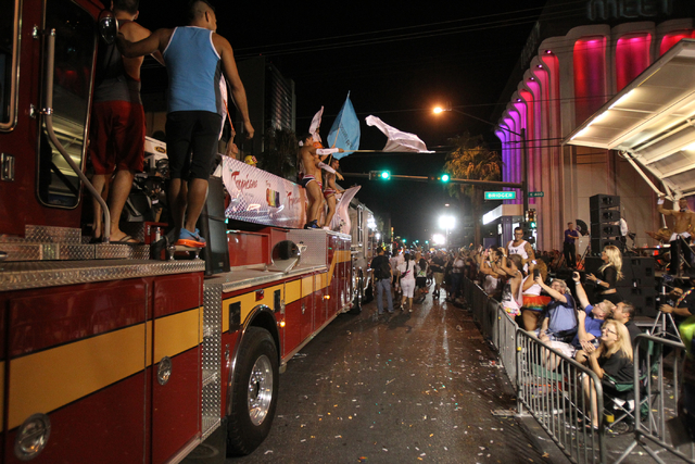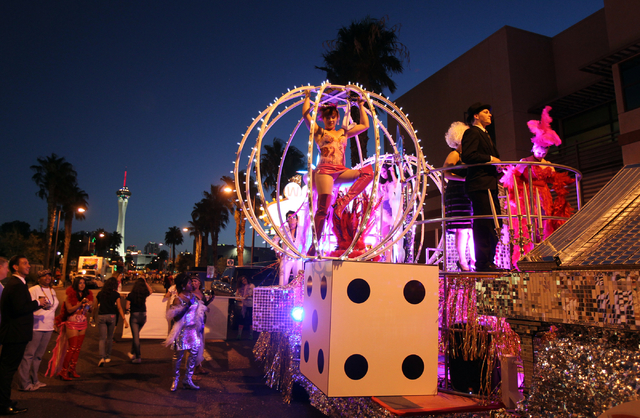 Members of the MGM Resorts International float prepare for the 16th Annual Las Vegas PRIDE Night Parade in downtown Las Vegas Friday, Sept. 5, 2014. The event supports the lesbian, gay, bisexual and transgender community. (K.M. Cannon/Las Vegas Review-Journal)
