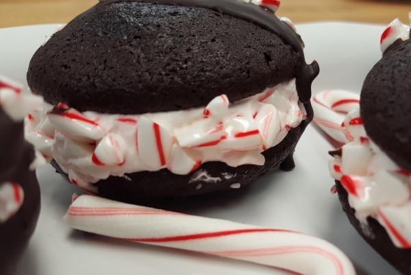 Crunchy peppermint candy-cane cream filling is sandwiched between moist dark-chocolate cake halves, $3.95 each.