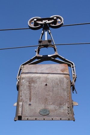 Overhead at Boot Hill stretches the Pioche aerial tramway, which operated from the 1920s to 1930s. Built by the Pioche Mines Company, it was used to bring ore down from Treasure Hill, above the town, to Godbe's Mill in the valley below. The structure vaguely resembles a ski lift with ore buckets in place of chairs hanging from a long loop of cable. It primarily operated on gravity, the full buckets traveling downhill providing nearly enough momentum to bring empty ones back up. It got a little help from a gasoline engine, but one that generated only five horsepower -- lawnmower-size. This was an extremely cost effective method of transporting ore, at about six cents per ton.