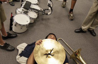 Meanwhile, Anthony "Kory" Moreno is just nervous. Moreno, a freshman, will be playing bass drum which is, he notes, "my first instrument ever."