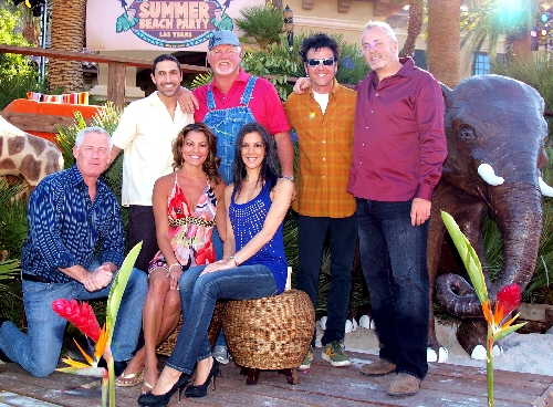 Hammer Island rocked with performances by the Bangles and the Beach Boys featuring Mike Love and Bruce Johnson. The party atmosphere was enhanced by jungle scenes playing on screens in Cougar Cove, Lions & Tigers Den and Zebra Lounge. Vibrant flowers, a sandy beach, and bars set up in thick, thatched huts added to the environment. Large graphics of zebras, lions, tigers, gorillas, hippos and butterflies surrounded the pool and waterfall. Event planner Tory L. Cooper said it took 10 days to create Hammer Island and three days for tear down.