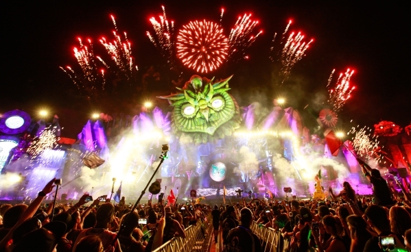 Attendees watch the opening ceremony performance at the Kinetic Field stage at Electric Daisy Carnival at the Las Vegas Motor Speedway in Las Vegas on Saturday, June 20, 2015. (Chase Stevens/Las Vegas Review-Journal) Follow Chase Stevens on Twitter @csstevensphoto