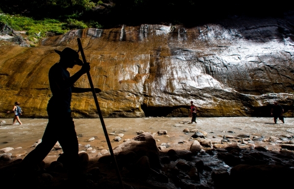People walk along the Virgin River while hiking the Narrows at Zion National Park in Utah on Monday, Sept. 7, 2015. Chase Stevens/Las Vegas Review-Journal Follow @csstevensphoto