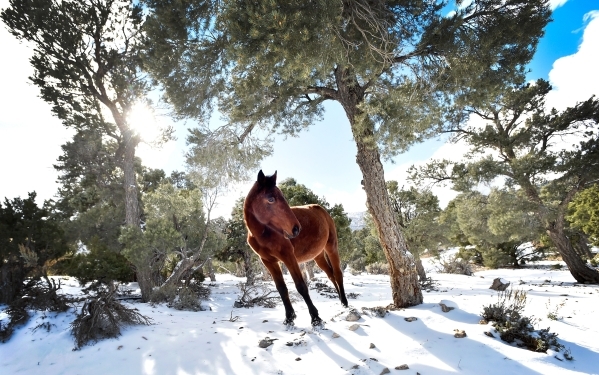 A wild horse makes it way out from the trees on fresh snow in Cold Creek on Tuesday, Nov. 10, 2015. The Bureau of Land Management has come under fire from members of Congress for an "ineffective" strategy that has failed to halt the explosion of wild horse populations. David Becker/Las Vegas Review-Journal