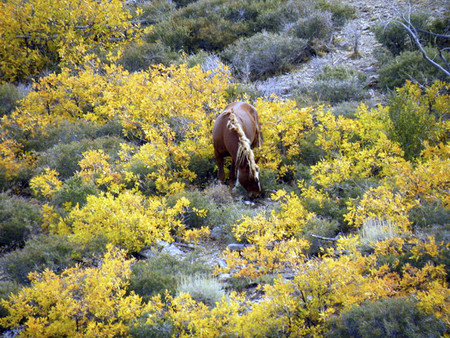 More than 50 responded with pictures of fall foliage, kids playing outside, animals, leaves and that favorite fall squash, pumpkin. While many were high quality photos, it was Las Vegan Kathy Gard's picture of a wild horse grazing in the desert that was selected for first prize. Gard will receive $100 for the photo she took on an autumn day at Cold Creek Canyon.