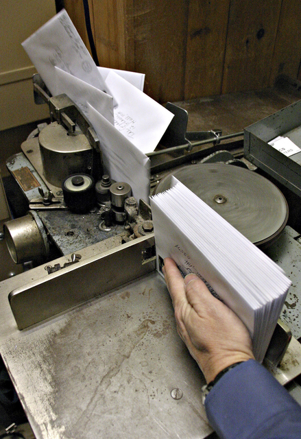 “It has a pinch wheel and it just starts drawing letters through,” Thompson said. “The machine works great. But you’ll stand there for several hours a day cancelling letters.”