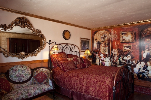My room is called simply the Movie Room, a comfortable temple dedicated to the greatest of all film genres, the Western. Above the bed hangs the rifle Tom Selleck used to such deadly effect in "Quigley Down Under." Perched on the dresser is the hat Clint Eastwood wore in "Pale Rider." A photo of Tom Mix sits on the nightstand. Movie posters cover the walls, everything from "Tombstone" to "The Arizonan" to "My Darling Clementine."