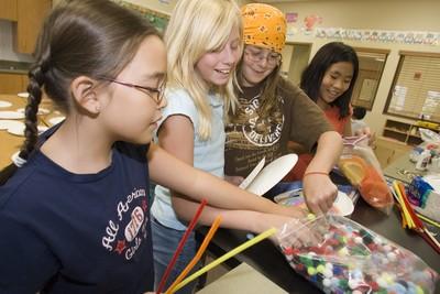 Look around the house, Tackett and Zwerg say, and use your imagination to come up with ideas and materials. Empty paper towel or toilet paper rolls, egg cartons, paper plates and dry beans make great materials, they say. The uses for construction paper, glitter, pencils, buttons and string are infinite, too.