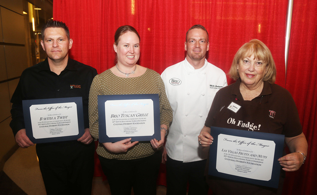 Community partners honored during the 20th Anniversary Educational Taste of Excellence were Tim Lavorci of B With A Twist Catering, Jenna Murewski and Mike Anderson of Brio Tuscan Grille, Donna Cutler of Las Vegas Fruits and Nuts, Sasha Rincon of the House of Blues and Foundation Room, Eva Paulssen of Island Fusion, Cake World’s owners Jessica and Lalo Castaneda, Mehdi Zarhloul of Crazy Pita and representatives from Simply Pure.
