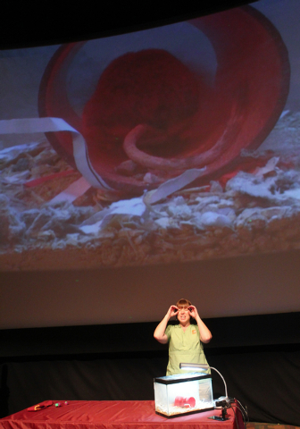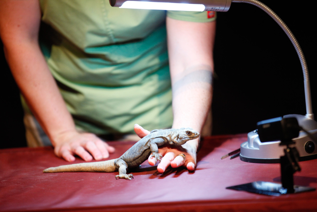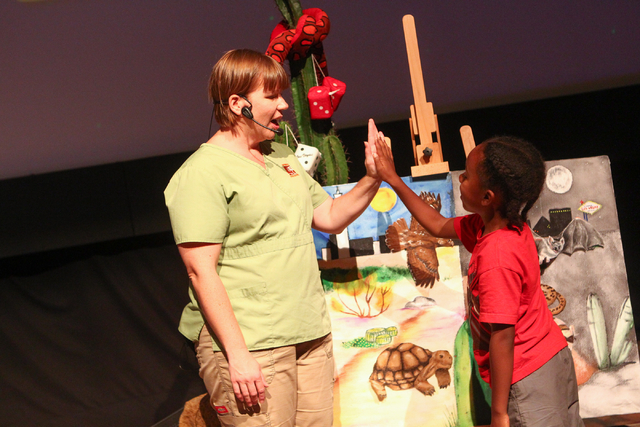 The cast of characters, introduced by Thomas O’Toole, Springs Preserve zoology supervisor, included the desert tortoise, a desert nightsnake — which, although venomous, is considered harmless to humans — a pocket gopher and that vinegaroon, a creepy-looking arachnid (which, the audience learns, all have eight legs) and a strange tail that has earned it the nickname “whip scorpion.”