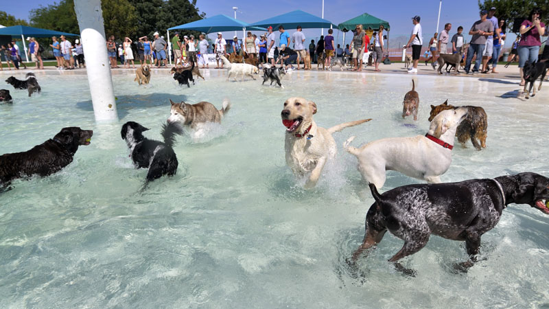 Dogs — and their owners — took over Black Mountain Aquatic Complex in Henderson on Saturday. Some dogs just frolicked while others played ball during the Doggie Paddle and Play Day.
