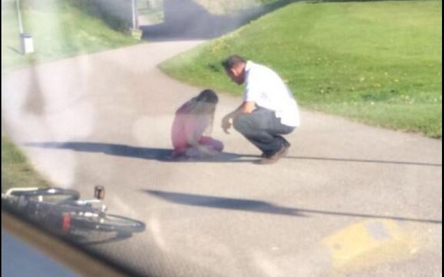According to the Huffington Post, André Grandin pulled the bus over, got out, walked over to the 10-year-old girl and knelt down beside her.