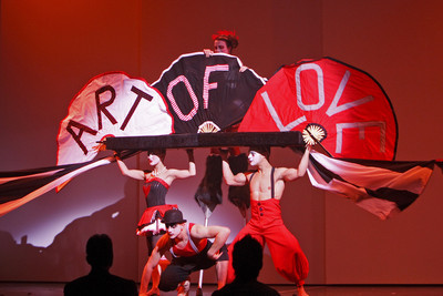 In the end, not even Office Max's utilitarian bonnet with highlighters, erasers and hole punchers could overcome the surrealism of Art of Love's bonnet. It involved a miniperformance from Cirque du Soleil jugglers and dancers, a woman on stilts and the unfurling of banners that spelled out "Art of Love."