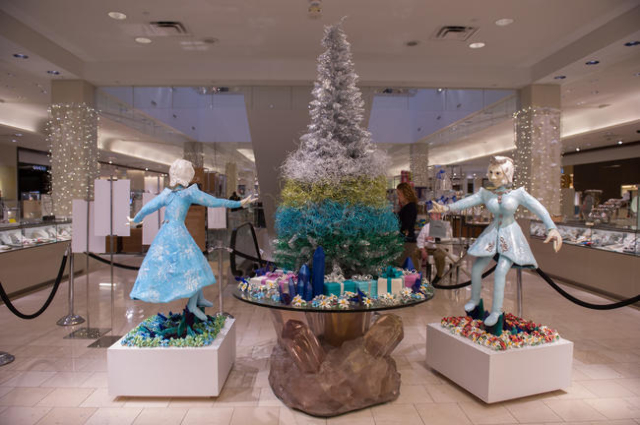 The characters and the flowers, presents and jewelry — everything in the display except the Christmas tree and table — were created by Robert Teddy, owner of M. Antoinette Cakes and a pastry instructor at Le Cordon Blue College of Culinary Arts, and Travis Martinez, a pastry chef at Caesars Palace, both of whom recently competed on the Food Network's "Cake Wars: Christmas."