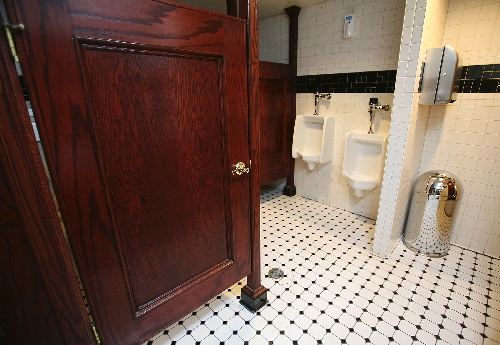 Like the man who approved every architectural design of this building, its bathrooms are unique.
