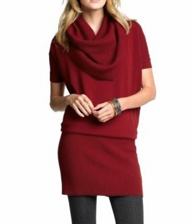 To copy her look, start with a sweater dress. You may not be able to find the stripes and the cowl neck together so decide to which of the two you're more partial. If it's the stripes, find a pattern that doesn't make you look like Foot Locker employs you. A bold geometric print will do just fine. If it's the cowl neck you like, do as Rihanna would, go big. It makes a statement, which means less accessorizing.