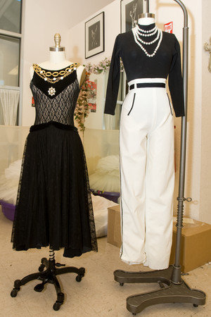 Both "Coco" costumes do as Chanel would and pile on the jewelry. Do four bangles, a triple tiered pearl necklace, white turban and other baubles make leaps and twirls a tad more difficult?