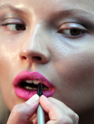 Case in point, your pucker. The runways called on bold shades, such as construction-site orange, Santa-suit red and Pepto pink, to paint lips. An office version might infuse these with a topcoat that will tame the look considerably.