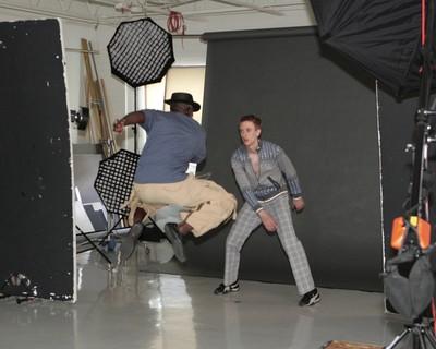 On the ballet dancer's third jump he finally lets go. "Aaaaaahhh!" he shouts out as he jumps with a look on his face that matches the craze in his scream. Metellus and crew huddle around the monitor that shows the image he just took. Got it. Call in the next dancer.