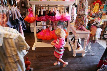 Originality reigns supreme with most high-end children's clothing shoppers. Just like their own wardrobes, these mothers want the best duds for their kids. It explains why Prada and Coach handbags hang from the arms of several mothers at Pattycakes today and why no bow is too big and no skirt is too fluffy for their daughters. Some might see it as instilling one-dimensional values, but Zimmer insists it's merely another gesture of affection.