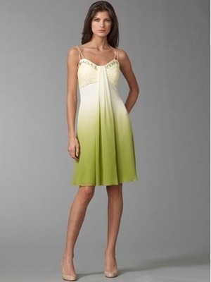 The ombre trend of a fading color has taken spring trends by storm. It's showing up all over garments and accessories and adding a lot of character to your look in the process. If you can't commit to a large scale version, like this Badgley Mischka cocktail dress, try testing it on your footwear or even sunglasses first. Hurry, before this trend fades out.