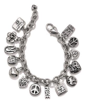 Brighton Collectibles introduces its Dream Peace bracelet tomorrow. Through Valentine's Day you can purchase the bracelet that features an assortment of peace symbol charms and Brighton will donate $5 toward charities such as Physicians for Peace and USA Cares. All Brighton is saying is give peace a chance. Brighton Dream Peace bracelet, $55, Brighton Collectibles