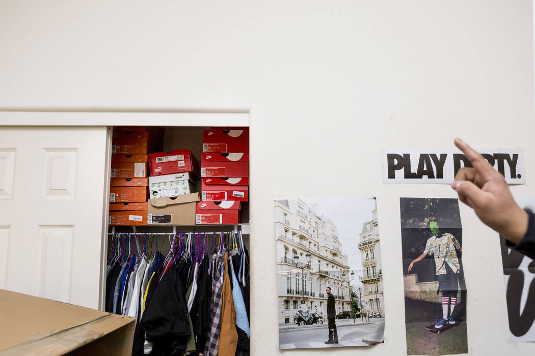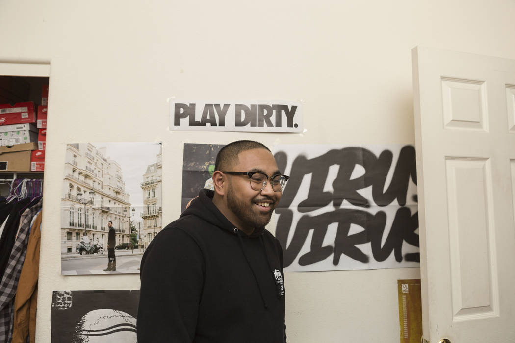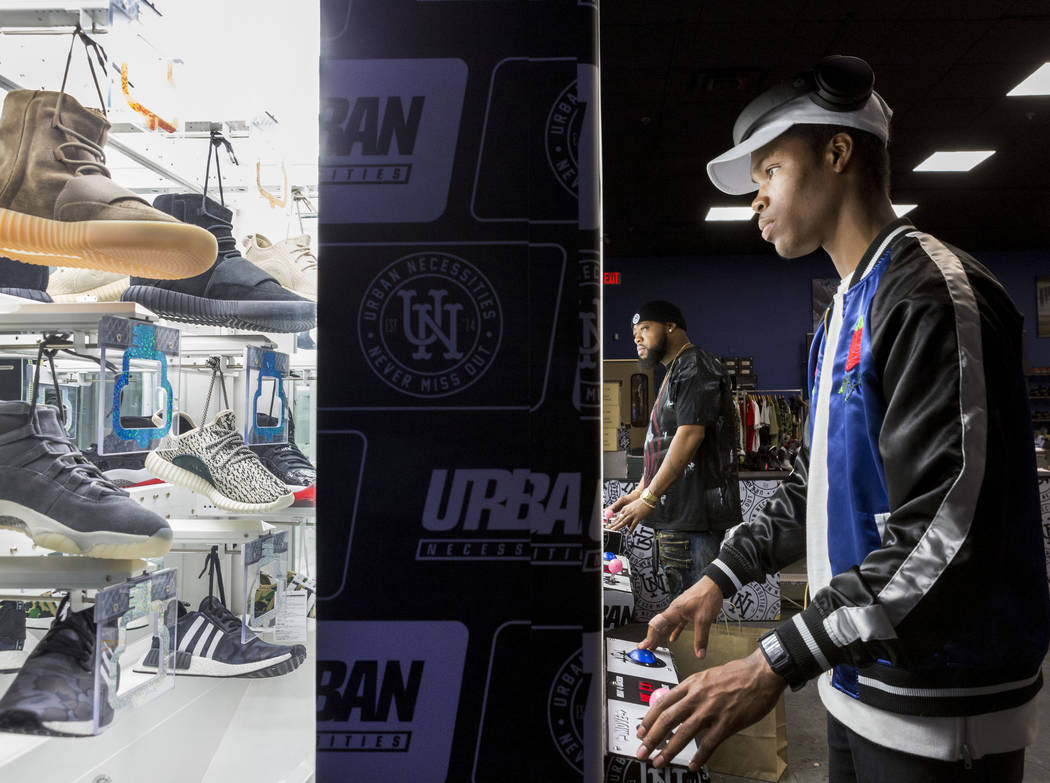 “Back in the day if you wore sneakers where I come from, you would get robbed, so I didn’t really wear them. I just collected them for looks,” he says as he stands 15 feet from more than $5,000 worth of Yeezys stacked along a wall in his store. “To me it’s coming here, being happy. I could make $8 or $10 an hour, but as long as I’m happy, I’m good.”