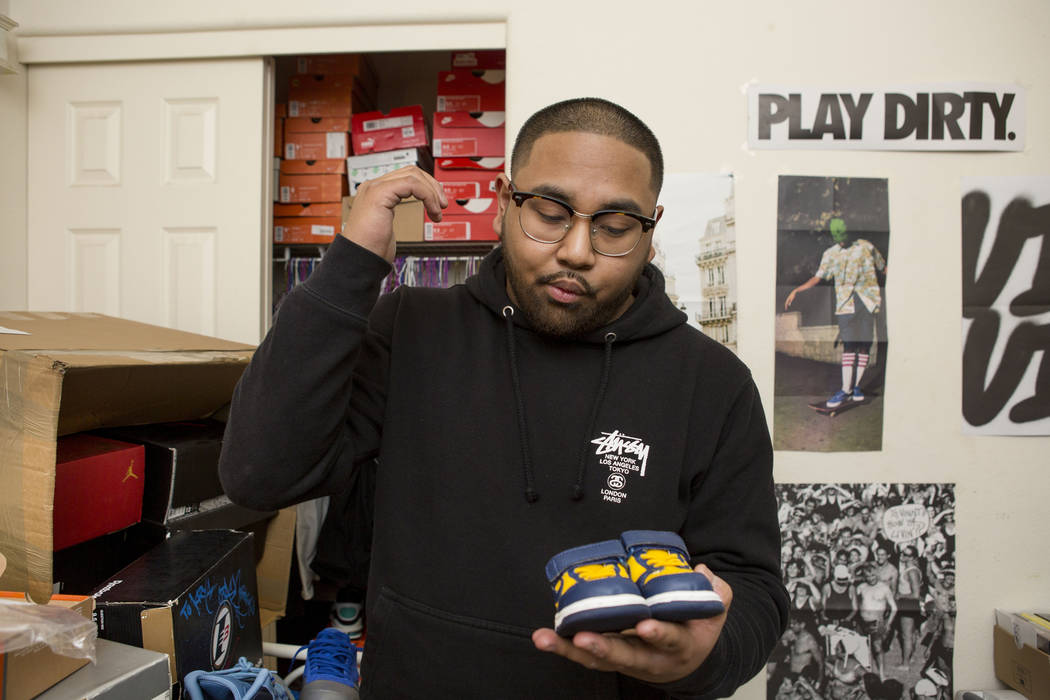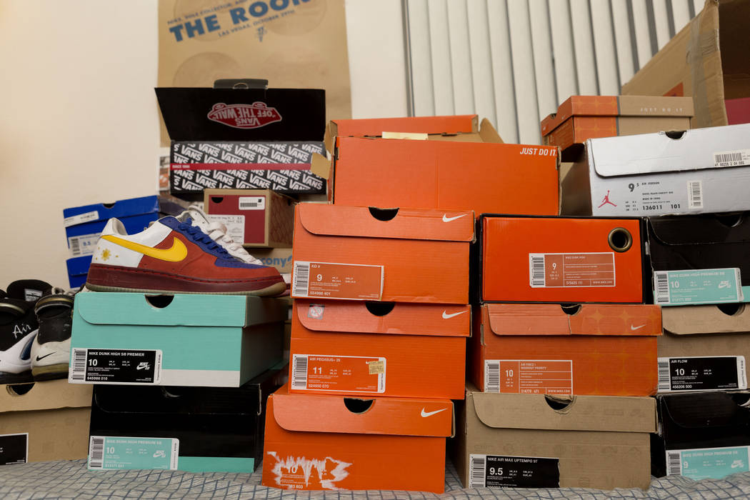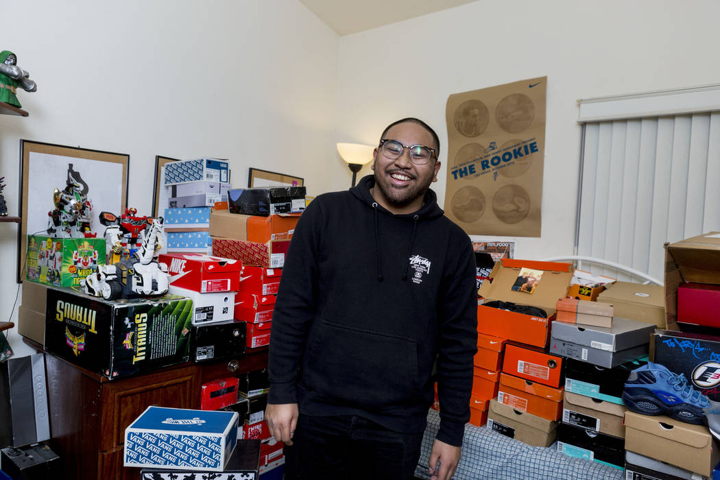 “For my first job, I would spend it all on shoes and I would take home two or three pairs a week,” says Bustamante, 26. “I worked at KB Toys for like $6 an hour and that was for a pair of shoes.”