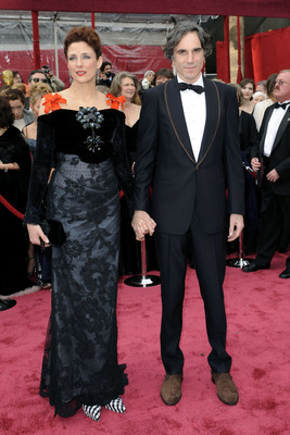 • Daniel Day-Lewis and Rebecca Miller: Remember the brown Col. Sanders suit that Joe Pesci wore in "My Cousin Vinny" when his dry cleaned suit landed in the mud? It doesn't belong at the Academy Awards, Daniel. I don't care if you did win best actor. The brown Hush Puppies just show how little you care. And Rebecca Miller? Wow. Enormous bedazzled stones down the front, bright red bows just in case you can't see the dress on the red carpet. A little brocade on the bottom for good measure. And since those accoutrements weren't hideous enough, she wore gingham shoes. Yikes.