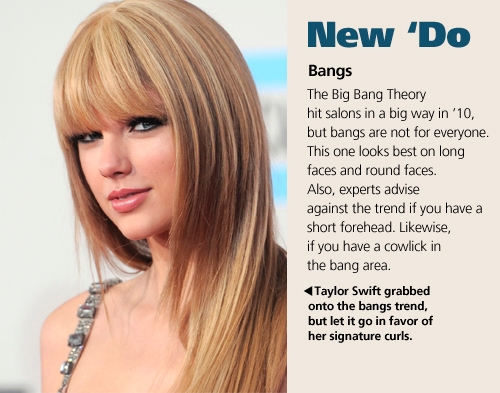 The Big Bang Theory hit salons in a big way in '10 and will likely hang around for a little while. But, they're not for everyone. This one looks best on long faces and round faces. Also, Linklater advises against the trend if you have a short forehead and/or if you have a cowlick in the bang area.