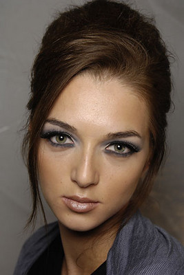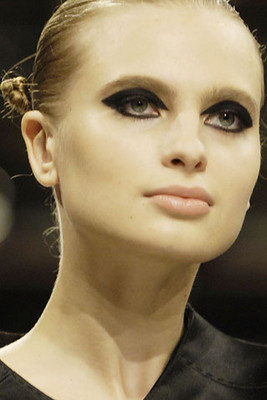 Rebellious eyes reminiscent of pop star Debbie Harry countered the simpler looks that found time on the runway. Givenchy paired sooty eyes with stark couture, while Chado Ralph Rucci relied on heavy eyeliner and neutral lips. For a bit of a change, add a dash of blue eye liner like Narciso Rodriguez did for his spring collection.