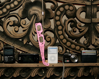 • What's in your bag? From right to left: Blackberry 8700, Sidekick LX, Hetherette show pass from New York Fashion Week, video iPod, Casio You Tube edition digital camera and Armani shark skin wallet.