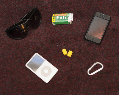 • What's in your handbag? Clockwise: Extra gum, iPhone, carabiner, ear plugs, iPod, Diesel sunglasses