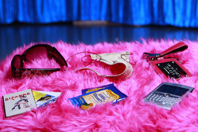 • What’s in your purse? Clockwise from top: Under G-string, keys with Victoria’s Secrets key chain, Blackberry World Edition, Energy 100% Vitamin C packs, Bizarre business card holder and Ed Hardy sunglasses.