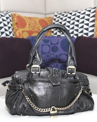 • What's in your handbag? Clockwise from top: Clinique Color Surge Impossibly Glossy Lip Gloss in Sure Thing, Sony Cybershot digital camera, Samsung Alias cell phone, Paul Smith business card holder, Coach wallet and Gucci sunglasses.