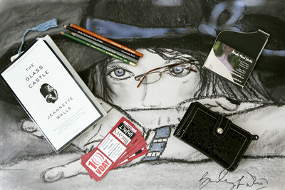 • What's in your handbag: Clockwise from top: eyeglasses, referback.com business card holder, relic black leather wallet, tickets for the community production of "V-Day," "The Glass Castle" by Jeannette Walls and charcoal pencils.