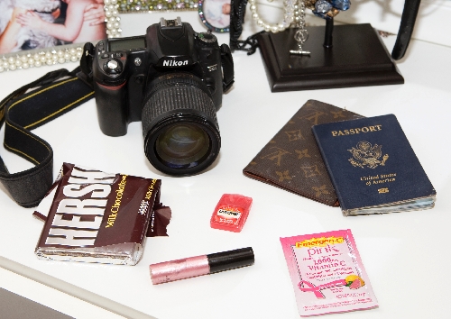 ■ What’s in your bag? Passport, Emergen-C pink lemonade, lip gloss, Listerine strips, Hershey’s milk chocolate bar (for munchies) Nikon D80 digital SLB camera (very heavy).