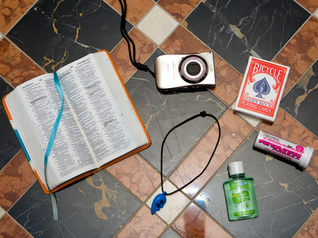 • What's in your bag? Digital camera, playing cards, Airborne, hand sanitizing lotion, a best friends necklace (my grandpa has the other half), Bible.