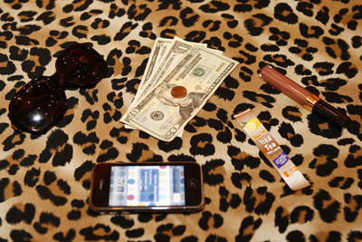 • What's in your bag? Cash, lucky penny, Chanel lip gloss, iced tea packet, iPhone, Chanel sunglasses