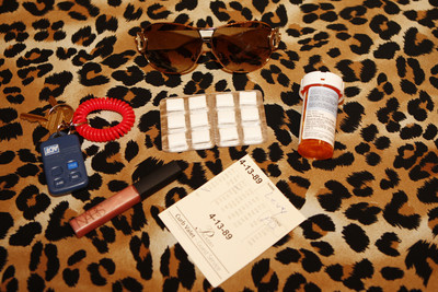 • What's in your bag? Christian Dior sunglasses, prescription allergy pills, valet stub, Trident sugar-free gum, NARS Orgasm lip gloss, car keys.