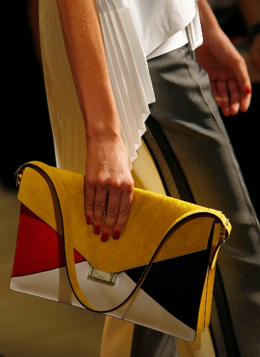 Colorblocking with graphic chunks of color and an unfussy look can take care of a lot of trends since it works on so many different types of garments and accessories. The easiest to work with, Glassman says, is a dress because you don’t have to worry about matching a top with a bottom. J. Mendel and BCBG Max Azria did it in a very understandable way, he says.