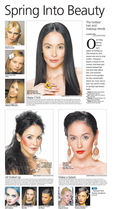One thing spring beauty isn't guilty of: boring us. The trends for this season are sure to stop traffic. "Dynasty" blush, a return to wet tresses, bed head and tomato-stained lips can have that effect. But, rest assured, there's a few goodies for the cosmetically timid, too. Love 'em or hate 'em, here's a look at spring's top beauty looks.