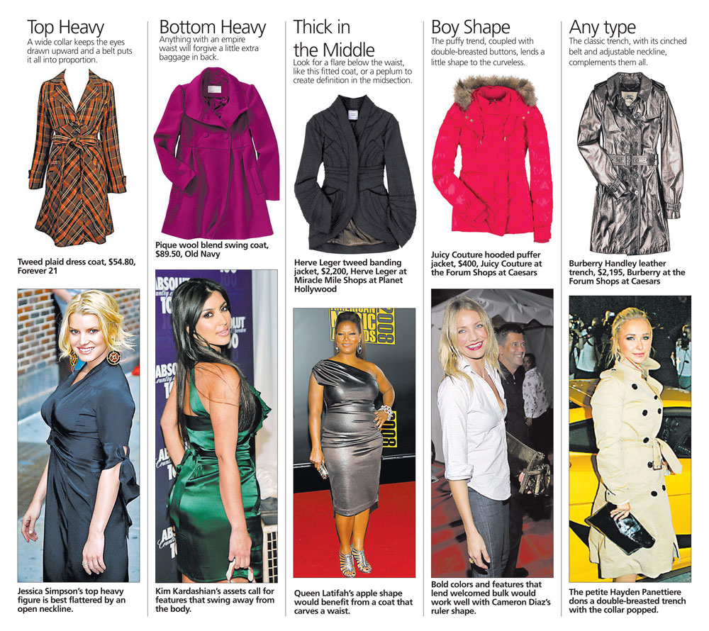Exercise caution, though. More options mean more room for error. According to Amy Berlin, fashion director at Shape magazine, there are three things one should consider when shopping coats. Your needs, your style and -- most importantly -- your shape.